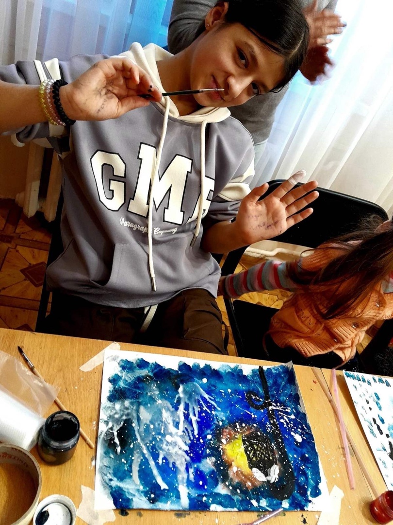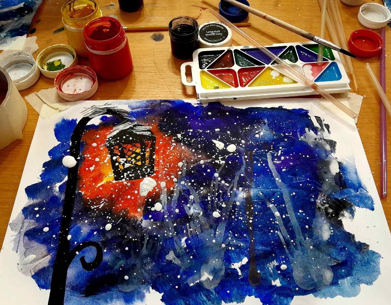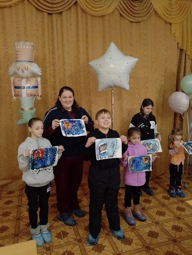 А для детей Никулина В.В. провела мастер-класс по рисованию зимнего пейзажа в нетрадиционной технике! Под руководством мастера картины получились у всех!