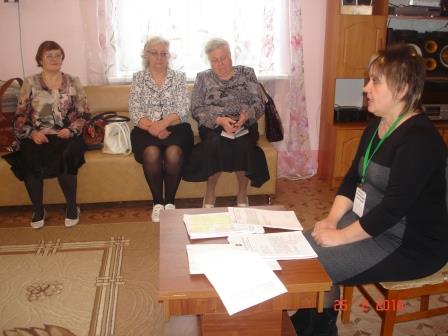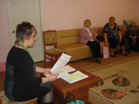 25 февраля 2016 года состоялась информационно-консультативная встреча начальника отдела льгот и социальных гарантий Управления социальной защиты населения Кушлаковой Светланы Анатольевны с отдыхающими отделения дневного пребывания МУ «Комплексный центр».